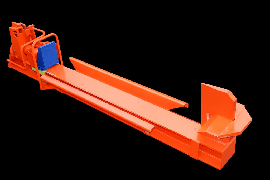 De houtklover is uitgevoerd voor horizontaal gebruik, waardoor zware stammen eenvoudig en ergonomisch verwerkt kunnen worden.