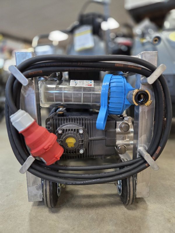 Met een robuuste 380 V industriële aansluiting (5-polig), een vermogen van 5 kW en een stroomkabel van 4 meter levert deze hogedrukreiniger langdurige en constante prestaties.