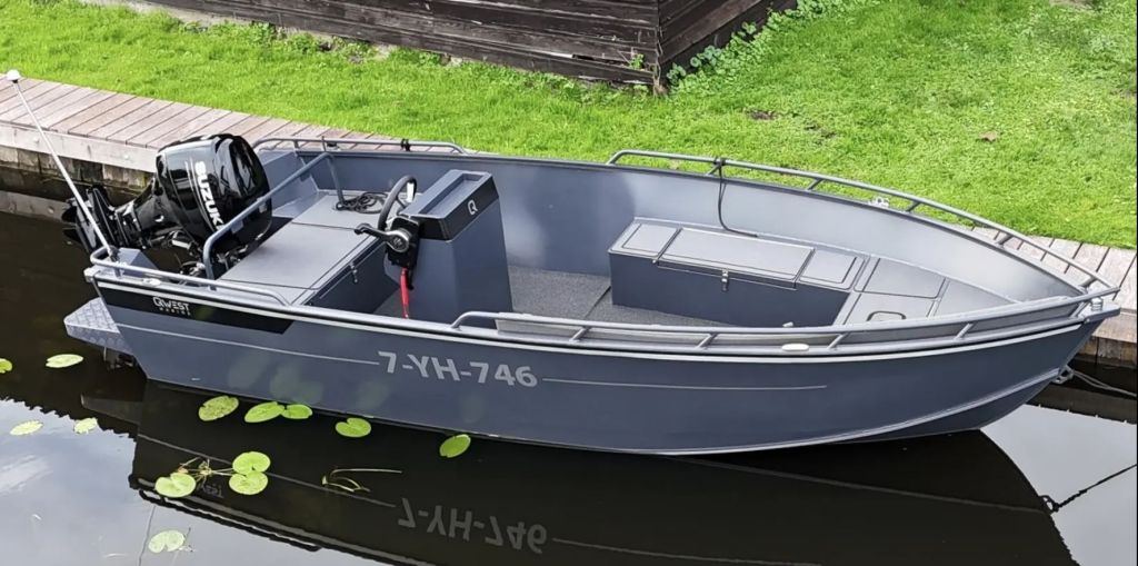 De Qwest R535A met Antraciet coating is het grootste model in de R-serie: een zelflozende en zeer robuuste aluminium boot met V-bodem.