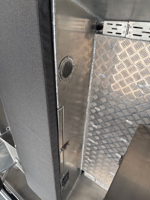 De romp en vloer zijn vervaardigd uit respectievelijk 4 mm dik aluminium, wat bijdraagt aan duurzaamheid en comfort.