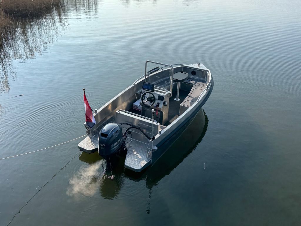 Dankzij de diepe V-bodem en brede rompvorm vaart de S535 koersvast en stabiel, ook bij hogere snelheden of ruwere omstandigheden. De boot is volledig vervaardigd uit 4 mm dik aluminium, inclusief de vlakke huid en de afgelaste traanplaatvloer. Dit zorgt voor een uiterst robuuste constructie met een lange levensduur en minimaal onderhoud.